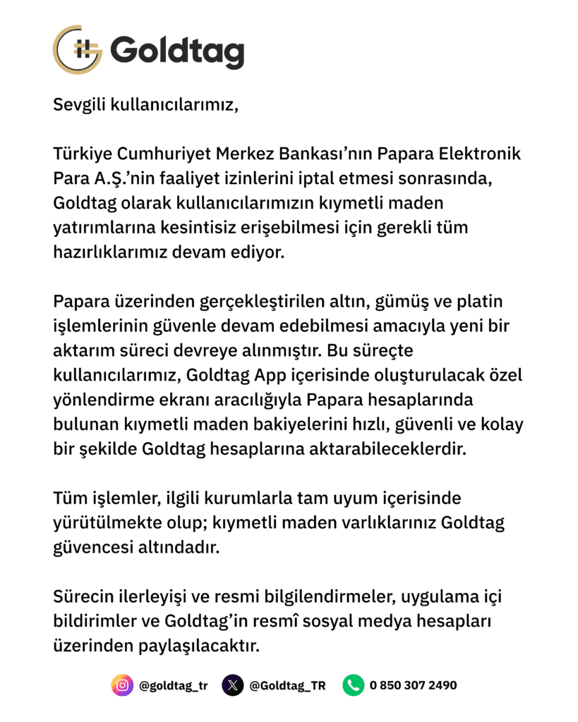 Destek ekibimize şu kanallardan ulaşabilirsiniz: • E-posta: info@goldtagapp.com • Telefon: 0 850 307 24 90